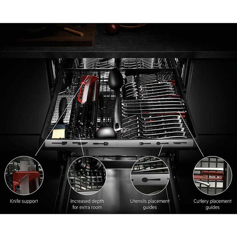 Lavavajillas integrable AEG FSE7572AP de 60 cm diseñado para 14 cubiertos que combina eficiencia y tecnología AirDry para un secado mejorado mediante apertura automática de puerta. Incorpora motor inverter, tercera bandeja MaxiFlex, panel LED QuickSelect y programa Eco, ofreciendo rendimiento silencioso y funciones para ahorro energético.