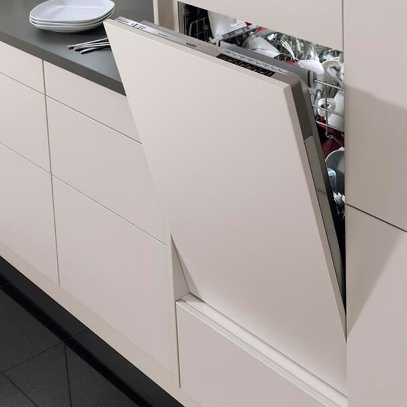 Lavavajillas integrable AEG FSB53617Z de 60 cm para 13 servicios que combina SatelliteClean y motor Inverter para una limpieza potente y silenciosa. Incluye 7 programas, AirDry para secado eficiente, QuickSelect y Beam on Floor. Consumo aproximado 9,9 L/ciclo y clase energética D.