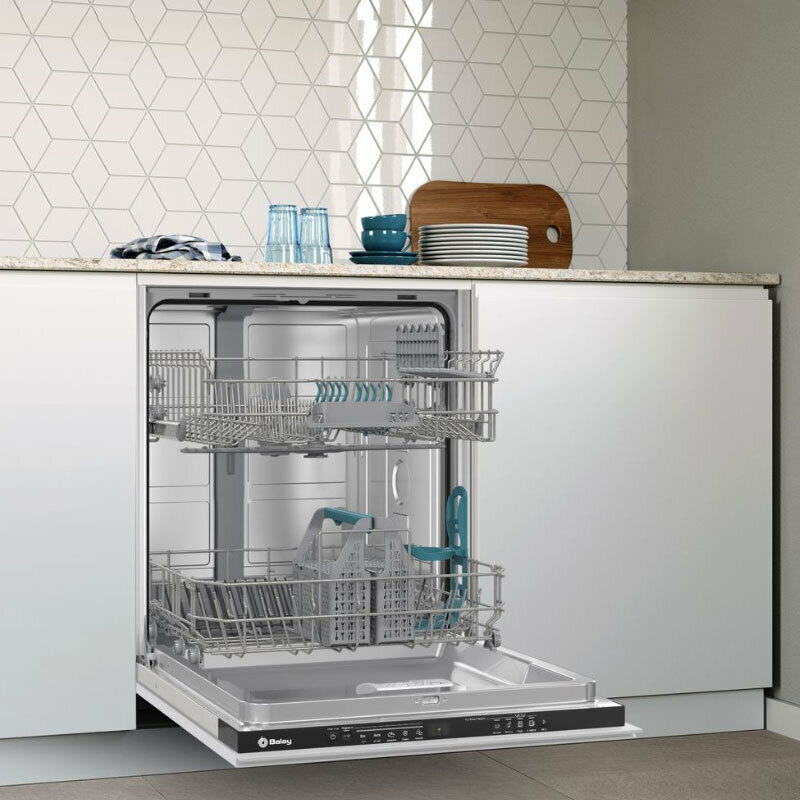 Lavavajillas integrable Balay 3VF5012NP de 60 cm que combina eficiencia, conectividad y seguridad, ideal para cocinas integradas. Con capacidad para 12 servicios y cinco programas ofrece 10,5 L por ciclo y clase E. Incorpora motor ExtraSilencio Inverter, AquaStop de por vida, media carga, cesta superior regulable y cuba mixta de acero con 10 años de garantía.