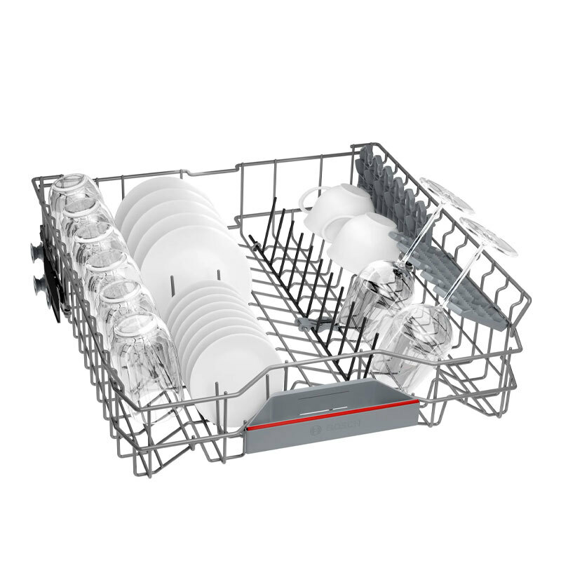 Lavavajillas integrable Bosch SBV6ZCX10E de 60 cm con capacidad para 14 servicios, eficiencia energética B y bajo nivel sonoro de 40 dB. Incluye secado PerfectDry con zeolitas, sistema antifugas AquaStop, conectividad Home Connect y cestas Flex con tercera bandeja para mayor versatilidad y comodidad.