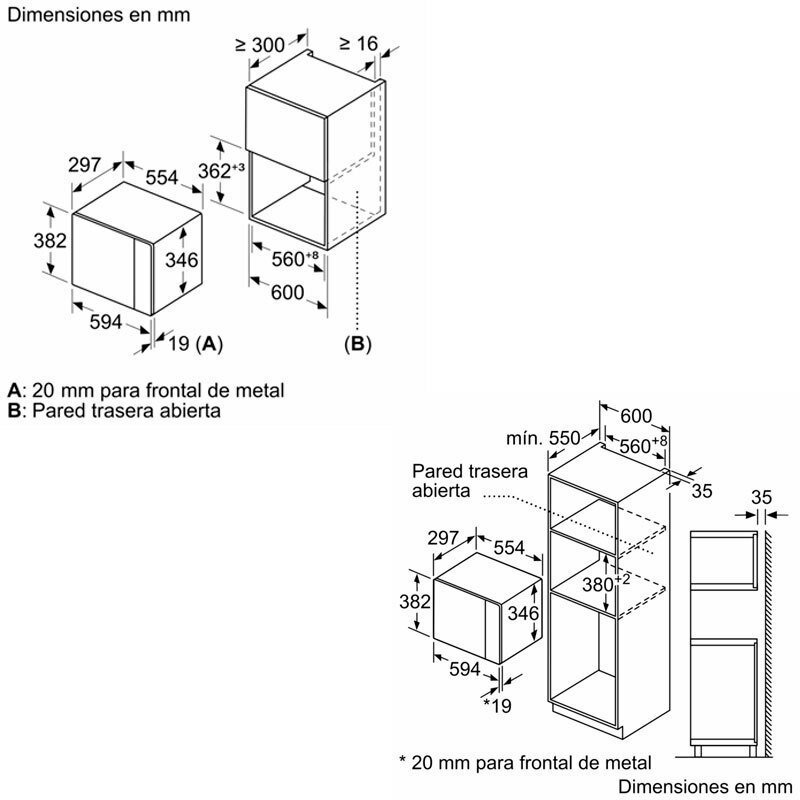 Microondas integrable Siemens BF525LMB1 – 20 L, 800 W, Control táctil
