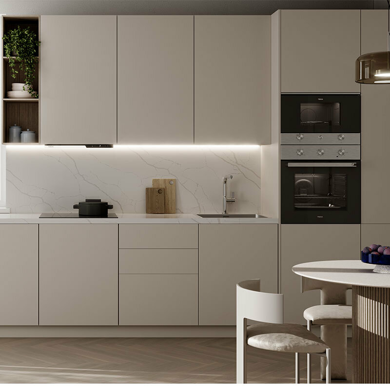 Microondas integrable de 22 litros pensado para encastre en mueble con acabado en acero inoxidable antihuellas. Base cerámica para calentamiento homogéneo sin plato giratorio, panel de mandos mecánicos con minutero, 5 niveles de potencia, función de descongelación y luz interior LED, apertura lateral izquierda y sistemas de seguridad en la apertura.