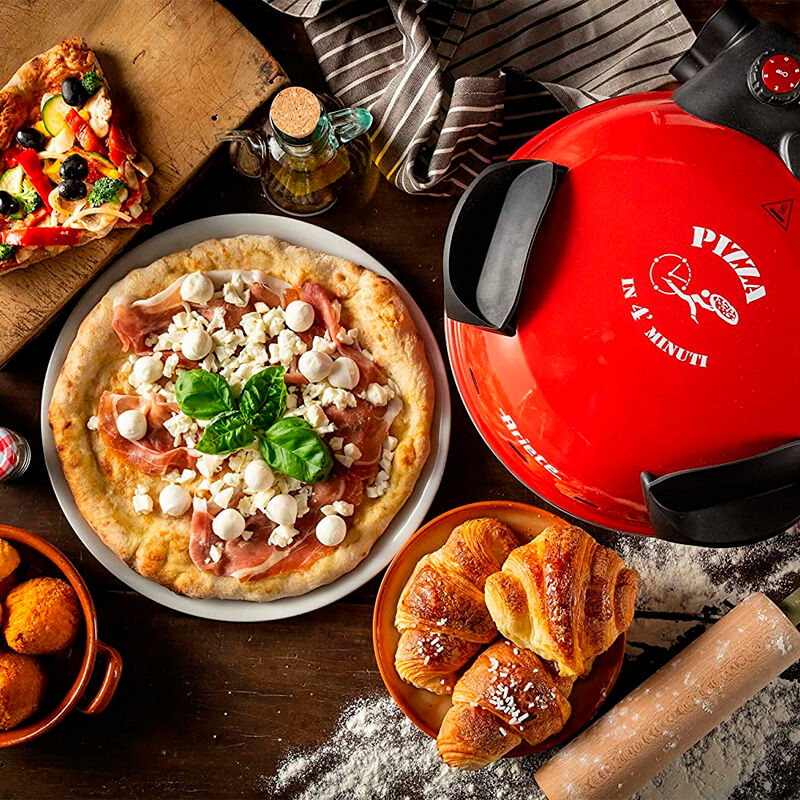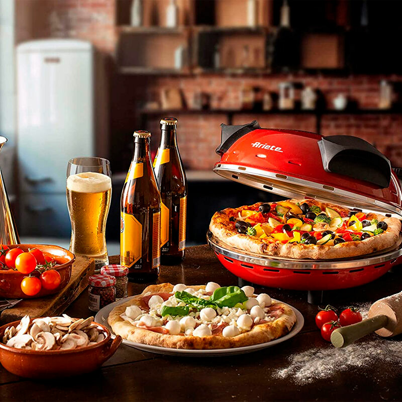 Mini horno Ariete 0909 diseñado para la preparación rápida de pizzas y focaccias gracias a su base de piedra refractaria de 33 cm y potencia de 1.200 W. Ofrece cinco niveles de temperatura hasta 400 °C, temporizador mecánico de 30 minutos y mandos sencillos. Compacto, de sobremesa y fácil de usar.
