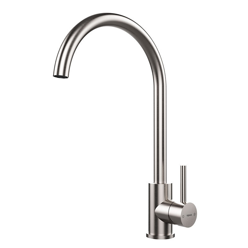 Pack Tekaway compuesto por un fregadero de una cubeta en acero inoxidable 18/10 con acabado pulido y un grifo UNI 9310 de acero inoxidable. Ofrece triple posibilidad de instalación (encastre, enrasado o bajo encimera), válvula canasta 3½, profundidad de cubeta 20 cm y accesorios de instalación que facilitan montaje y uso diario.