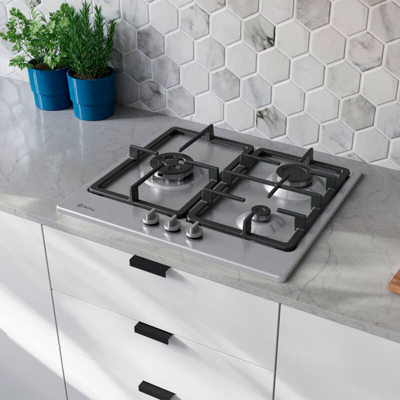 Placa de gas Balay 3ETX563CB – Inox, 3 quemadores, GasStop