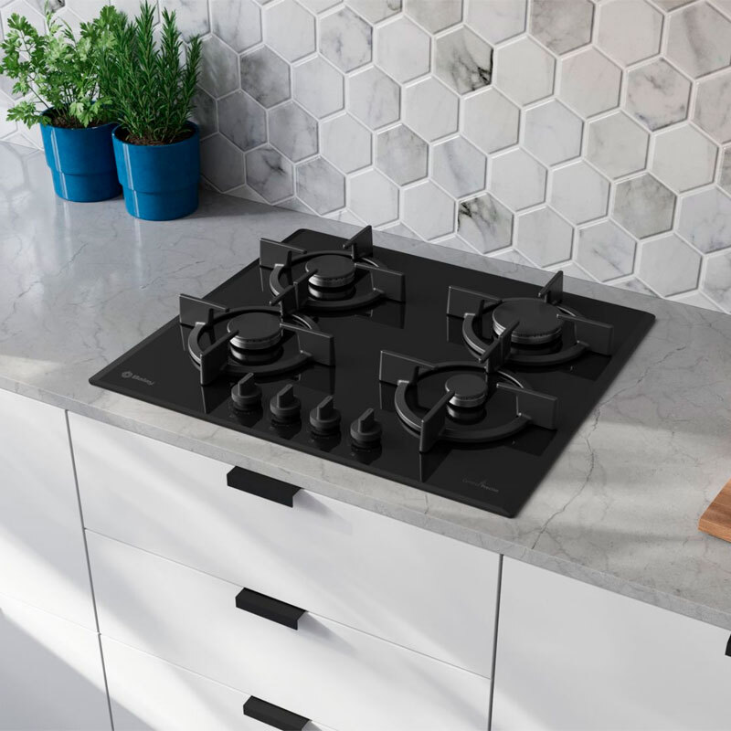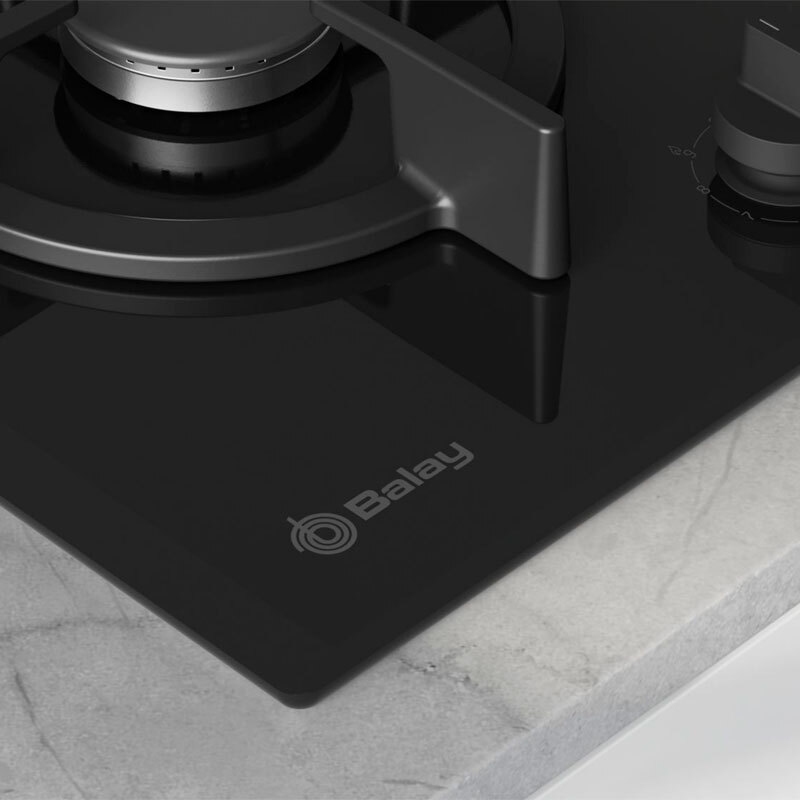 Placa de gas Balay 3ETG664RB – Cristal templado negro, 4 quemadores (zona 30 cm), GasStop