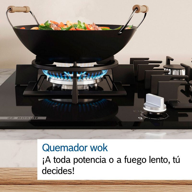 Placa de gas 60 cm Bosch PPC6A6I10 – Cristal templado, FlameSelect 9 niveles, GasStop