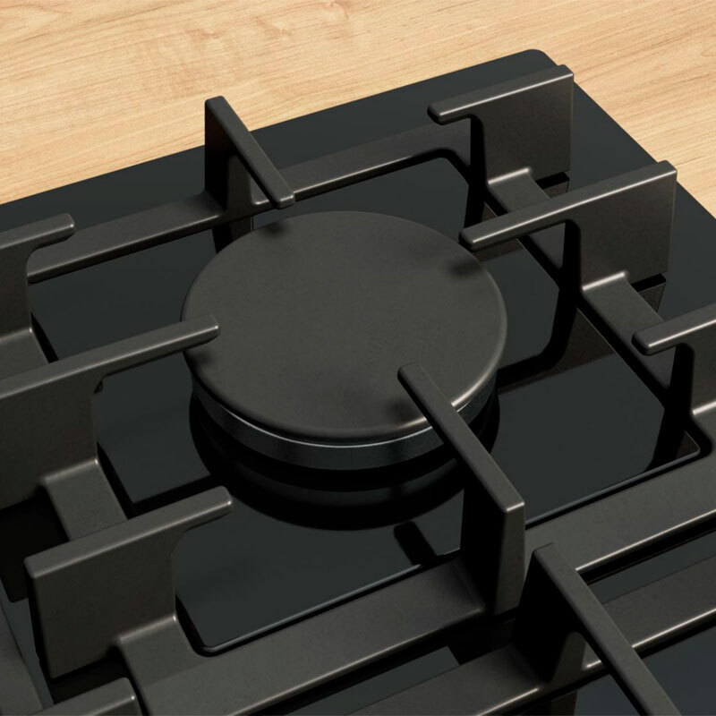 Placa de gas Bosch de 75 cm con superficie de vidrio templado en color negro que ofrece cinco zonas de cocción y control por mandos giratorios. Incorpora FlameSelect de 9 niveles para regulación precisa de la llama, parrillas de hierro fundido extraíbles aptas para lavavajillas y sistema de seguridad GasStop que garantiza una cocción segura y un mantenimiento sencillo.