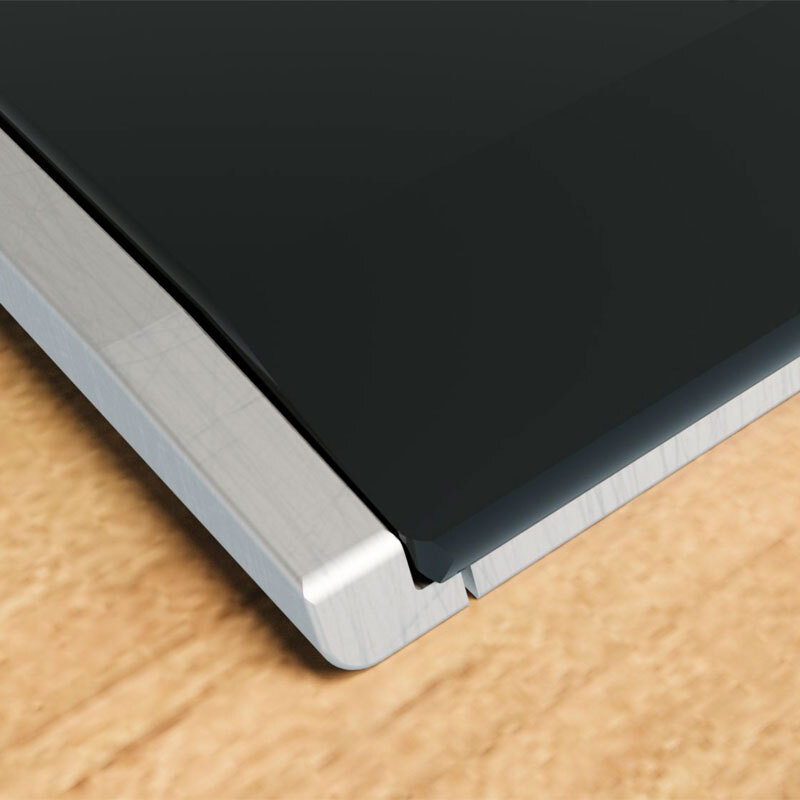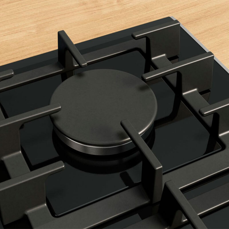 Placa de gas Bosch PRB3A6I40 de 30 cm diseñada para instalación encastrada tipo dominó. Superficie en cristal vitrocerámico negro, dos zonas de cocción con FlameSelect de 9 niveles y quemador rápido. Parrillas lavables en lavavajillas, mandos extraíbles y sistema de seguridad GasStop para corte de gas en ausencia de llama.