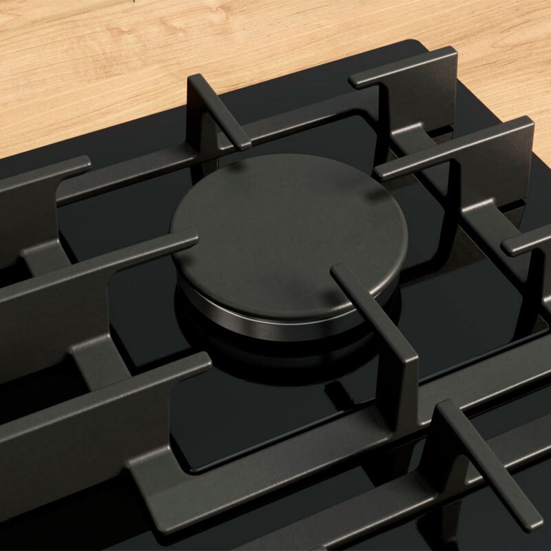Placa de gas de 90 cm Serie 8 diseñada para un control preciso y limpieza sencilla. Superficie en vidrio templado negro, 5 quemadores incluyendo Wok con doble circuito, mandos extraíbles iluminados y FlameSelect de 9 niveles. Compatibilidad con campanas inteligentes y temporizador digital integrados.