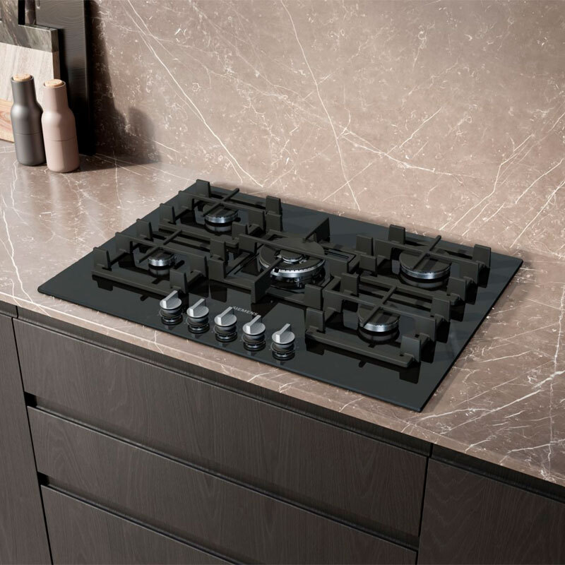 Placa de gas Siemens EP7A6QI40 – 75 cm, 5 quemadores stepFlame, Wok 4 kW