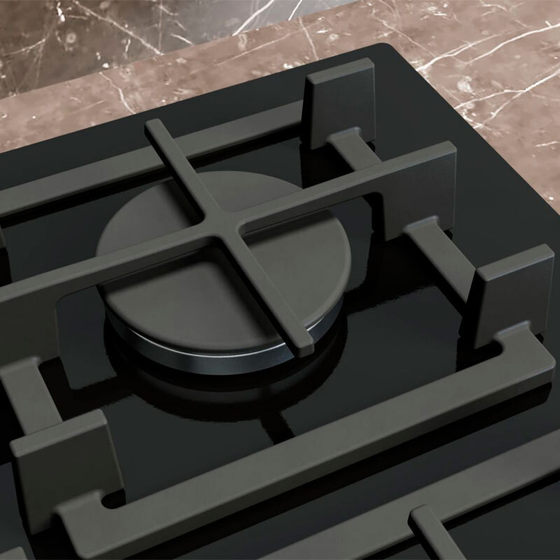 Placa de gas Siemens EP7A6QI40 de 75 cm con superficie de cristal templado negro para instalación enrasada o sobre encimera. Incorpora 5 quemadores con tecnología stepFlame de 9 niveles, quemador wok de 4 kW, mandos metálicos extraíbles, parrillas de hierro fundido y sistema de seguridad gas.