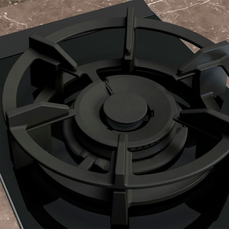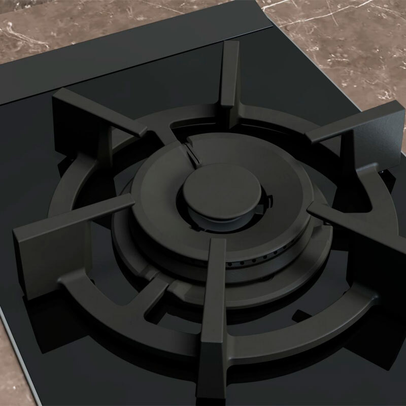 Placa dominó de gas Siemens ER3A6AI10 de 30 cm con superficie de cristal vitrocerámico negro que ofrece alta resistencia y limpieza fácil. Incorpora tecnología stepFlame con 9 niveles de llama, quemador de diseño plano, parrillas de hierro fundido y mandos metálicos extraíbles para un manejo preciso y seguro (gasStop). Ideal para encimera integrada y uso profesional en espacios reducidos.