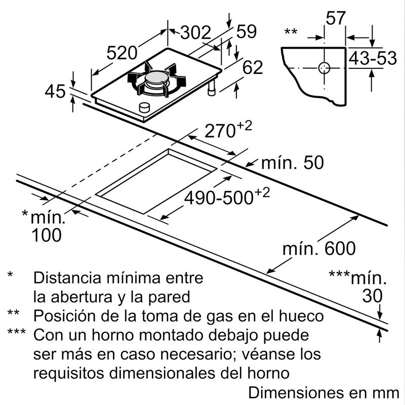 Placa Domino Gas Siemens ER3A6AI10 – Cristal negro, StepFlame 9 niveles, 30 cm