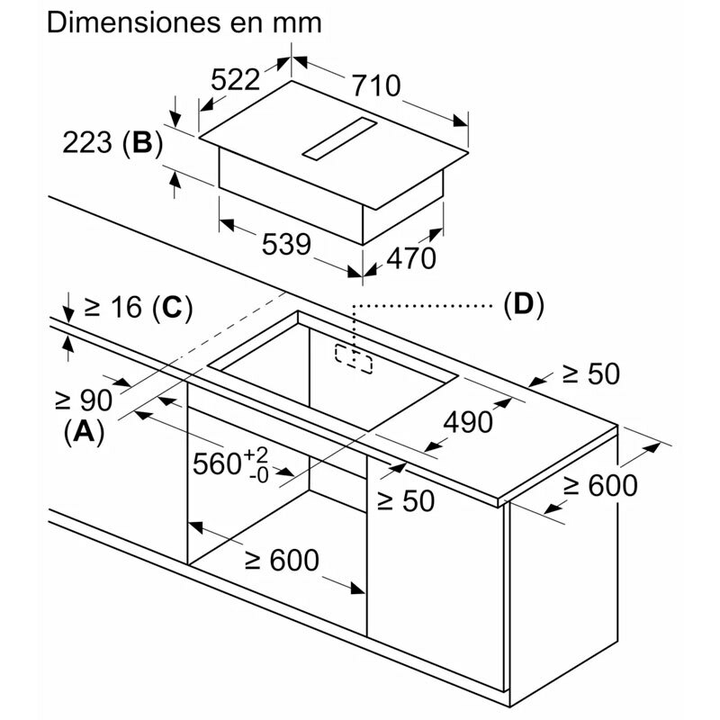 Placa de inducción Bosch PVQ731H26E – 70 cm, extractor integrado, 4 zonas Combi
