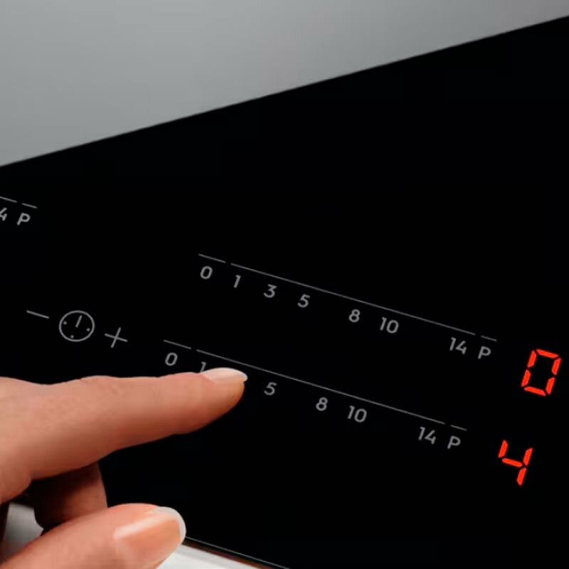 Placa de inducción Electrolux EIT60342 de 60 cm con acabado en cristal negro y bisel frontal. Ofrece tres zonas de cocción, incluida una doble anular de 28 cm con PowerBoost hasta 5,2 kW. Controles táctiles deslizantes independientes, temporizador por zona, bloqueo infantil, indicador de calor residual en tres niveles y conectividad Hob2Hood. Instalación sin herramientas y sistema CleverHeat que optimiza el consumo.