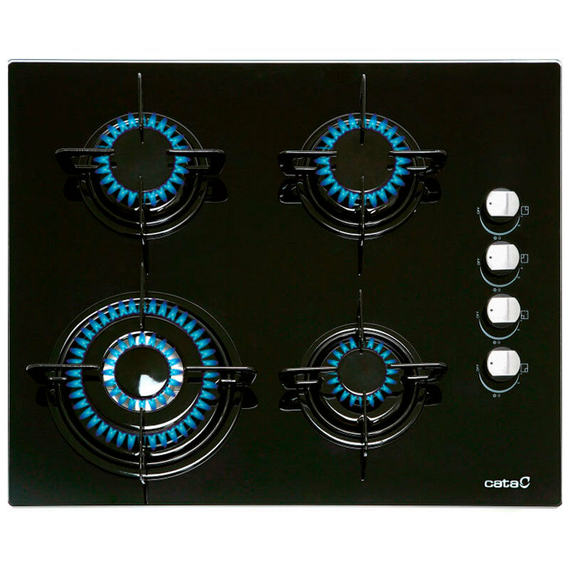 Placa de gas 60 cm Cata CIB6031BK – Cristal negro, 4 quemadores, triple corona