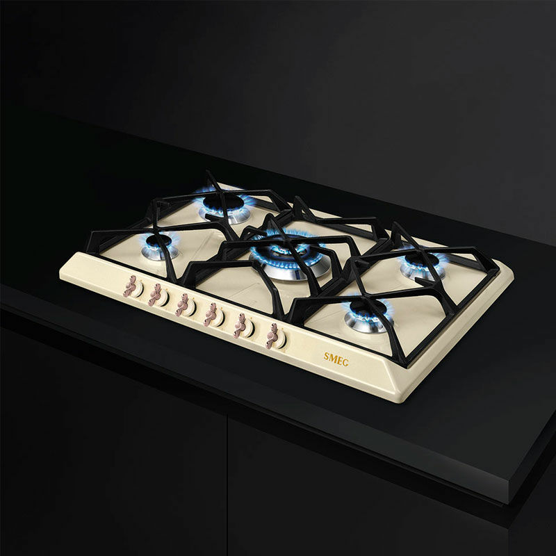 Placa de gas Smeg SRV876POGH – 5 quemadores, esmaltada crema, parrillas de fundición