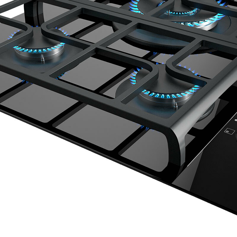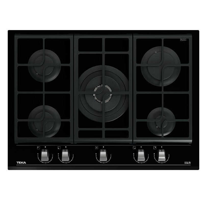 Placa de gas Teka GZC 75330 XBA – 5 quemadores SABAF, Cristal negro biselado, Control ExactFlame