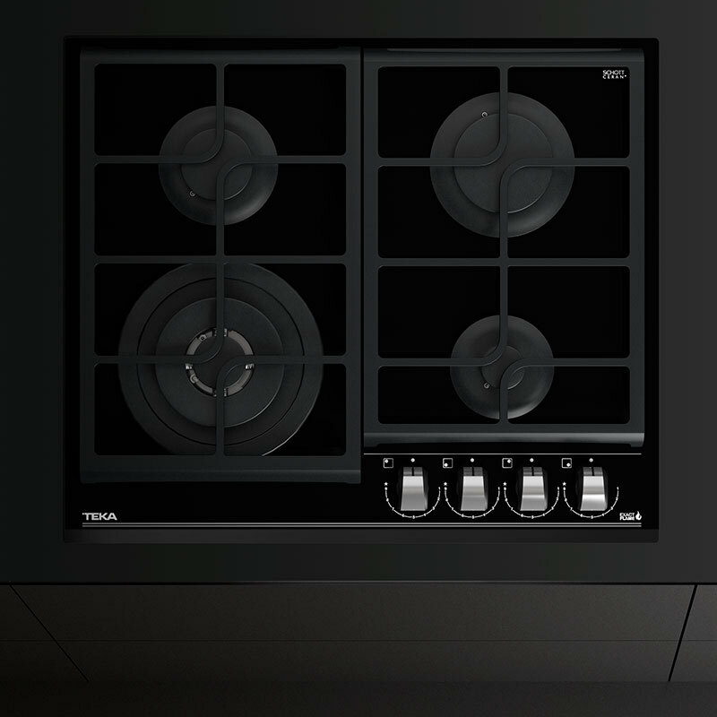 Placa de gas Teka GZC 64320 XB – Cristal templado, 4 quemadores, ExactFlame 9 niveles