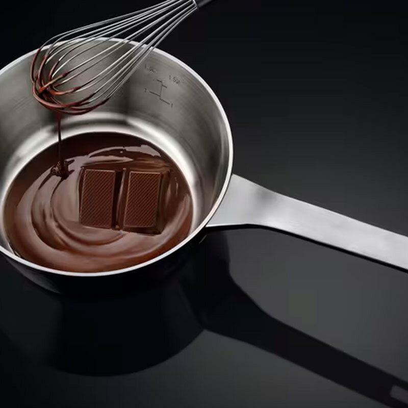 Placa de inducción AEG Serie 8000 TI63IQ30FB de 60 cm diseñada para una cocción eficiente y precisa. Dispone de tres zonas (una de 28 cm y dos de 21 cm) con función Puente, sensores SenseBoil y SenseFry, controles táctiles deslizantes, temporizadores independientes y conexión Hob2Hood para integración con campanas. Su superficie de cristal negro biselada facilita la limpieza y ofrece potencia máxima de 7.350 W con bloqueo de seguridad y indicador de calor residual.