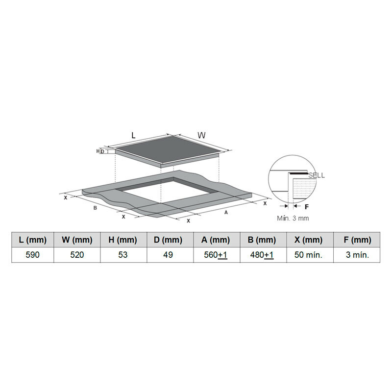 Ancho hueco de encastre