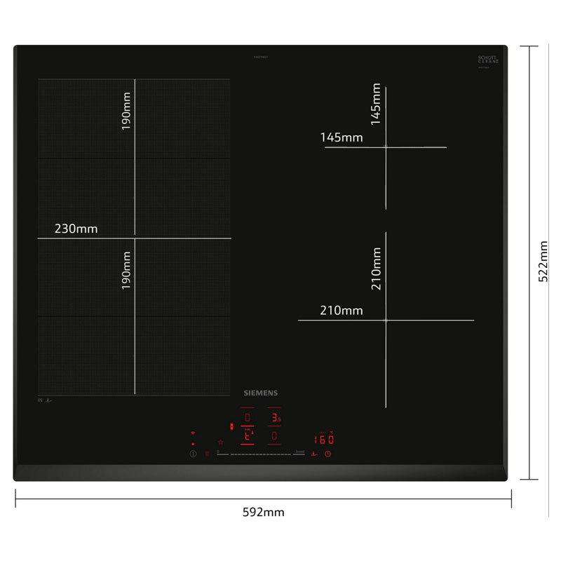 Placa de inducción Siemens EX651HEC1E – FlexInducción, 4 zonas, Home Connect