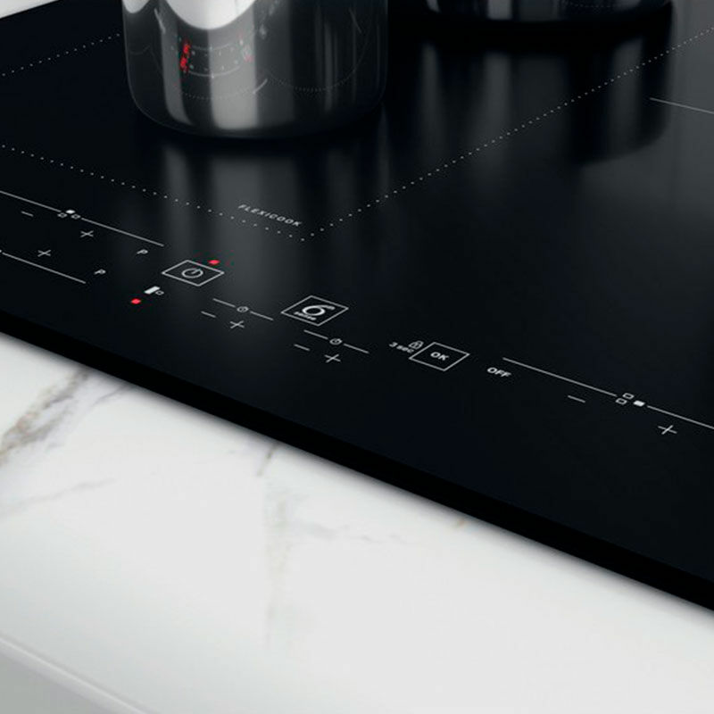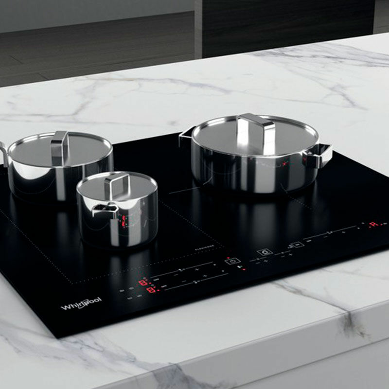 Placa de inducción Whirlpool WLB2760BF de 60 cm con 3 zonas de cocción y tecnología FlexiCook que permite combinar zonas para recipientes grandes. Potencia total 7.200 W con función Booster, control táctil y bloqueo infantil. Superficie negra de cristal fácil de limpiar, temporizador y gestión de potencia para instalación empotrada.
