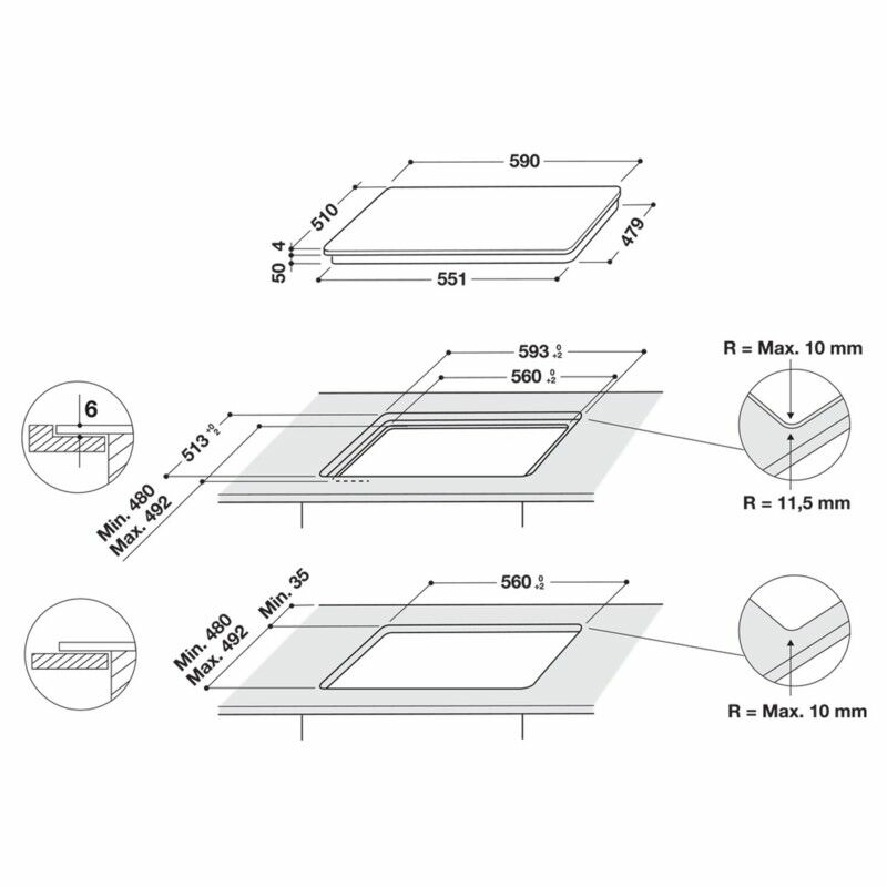 Encimera de inducción Whirlpool WL B4560 NE/W – 4 zonas, 7200 W, Zona flexible