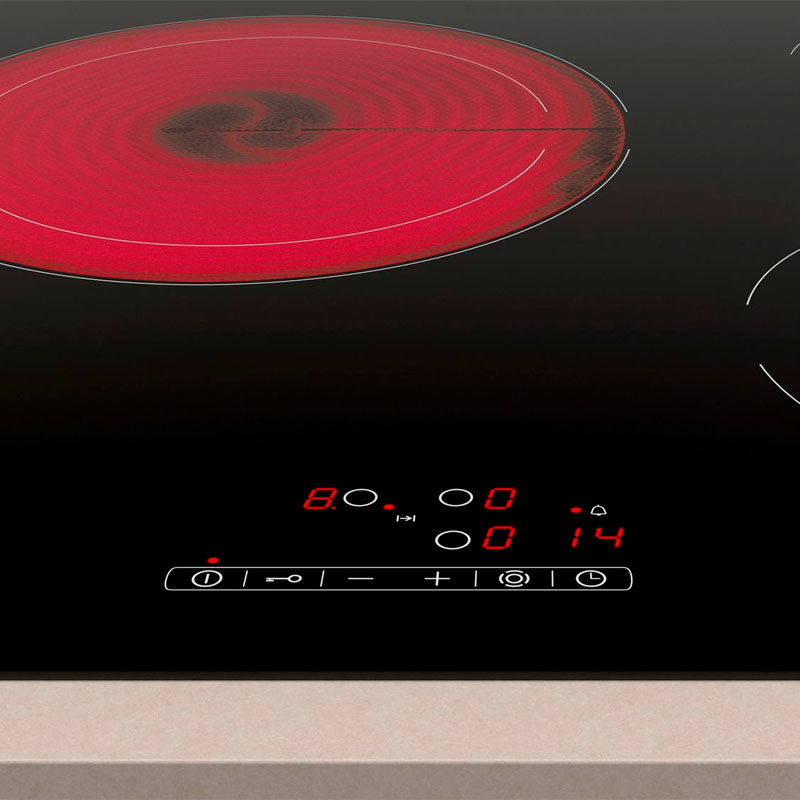 Placa vitrocerámica de 60 cm Balay modelo 3EB715ER diseñada para instalación integrable con superficie negra de cristal vitrocerámico, control táctil frontal y tres zonas de cocción, incluida una zona gigante flexible 21/28 cm. Incorpora programador por zona, bloqueo infantil y indicador de calor residual, ofreciendo uso seguro y manejo intuitivo.