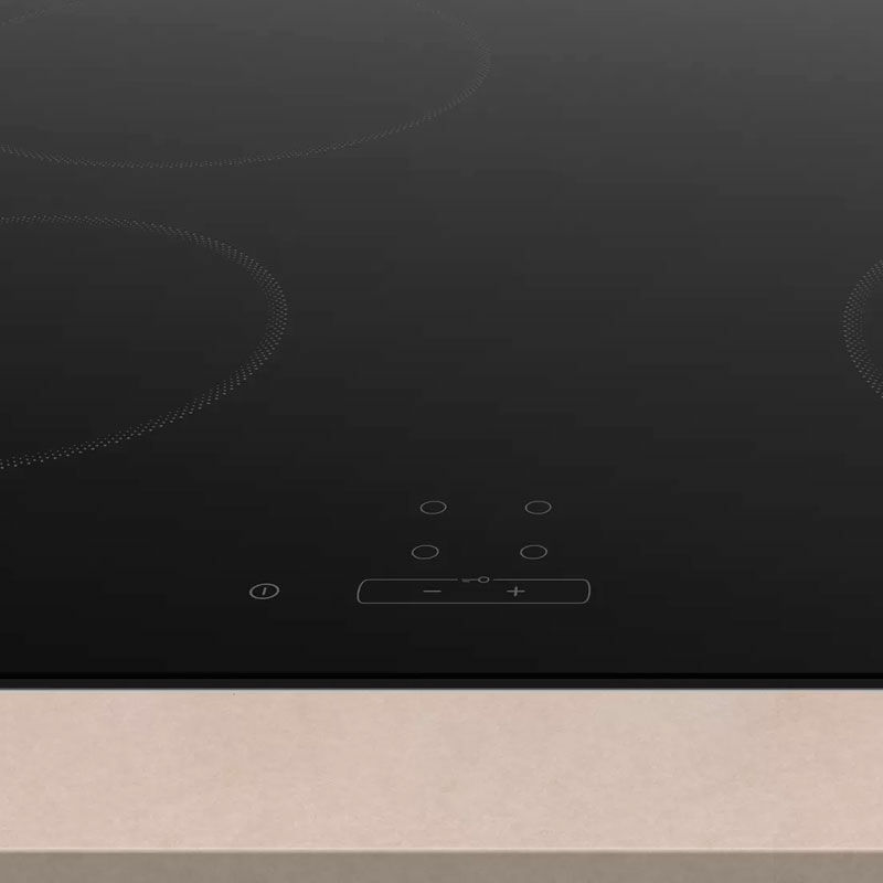 Placa vitrocerámica Balay 3EB761EN de 60 cm diseñada para encastre sin marco y acabado en cristal negro. Incorpora cuatro zonas de cocción (2 de 18,0 cm y 2 de 14,5 cm) con control táctil de 9 niveles y potencia total de 6.400 W. Ofrece indicador de calor residual, bloqueo infantil temporal o permanente y desconexión automática para mayor seguridad y facilidad de limpieza.