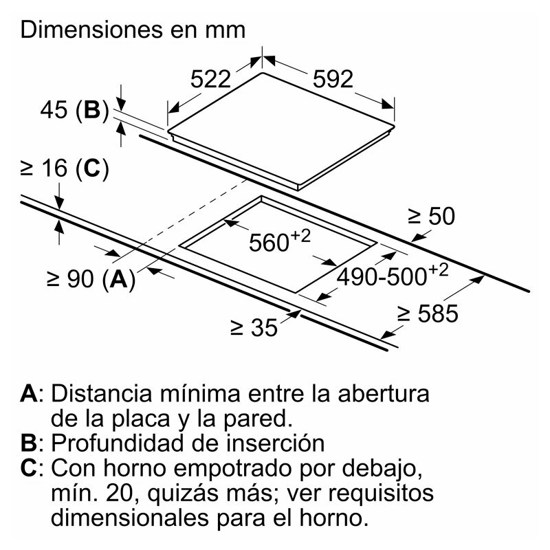 Placa vitrocerámica Bosch PKK631FP8E – 60 cm, 3 zonas, Control táctil 17 niveles