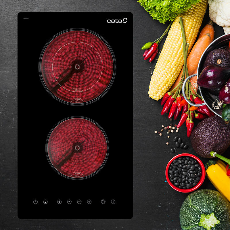 Placa vitrocerámica Cata TD 3002 BK – 2 zonas, control táctil, bloqueo infantil