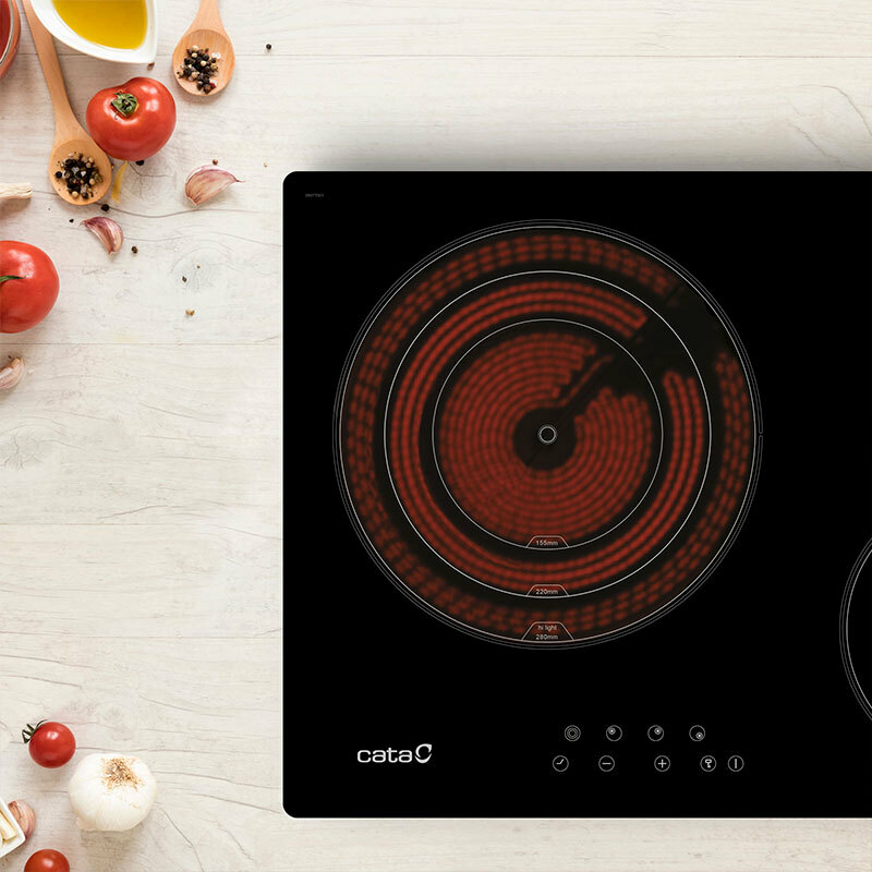 Placa vitrocerámica Cata TD 3002 BK de diseño compacto y acabado en cristal negro que ofrece dos zonas de cocción con 9 niveles de potencia y programador. Incorpora control táctil frontal, bloqueo infantil, apagado automático e indicador de calor residual para un uso seguro y sencillo.