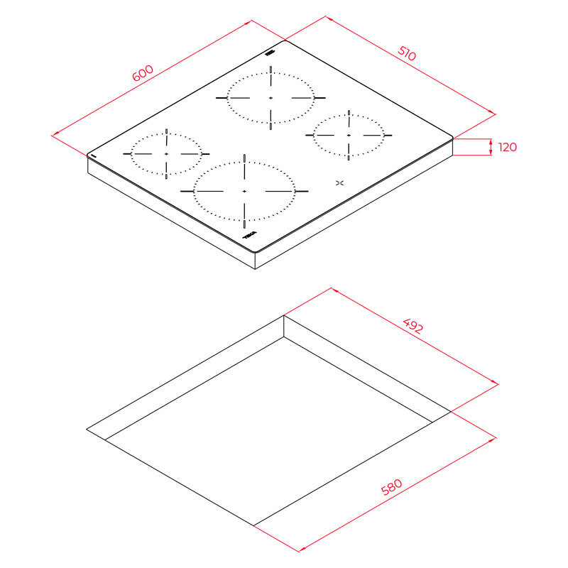 Placa vitrocerámica Teka TTC 64010 CRD BK – 4 zonas High Light, 6300 W, Marco inox