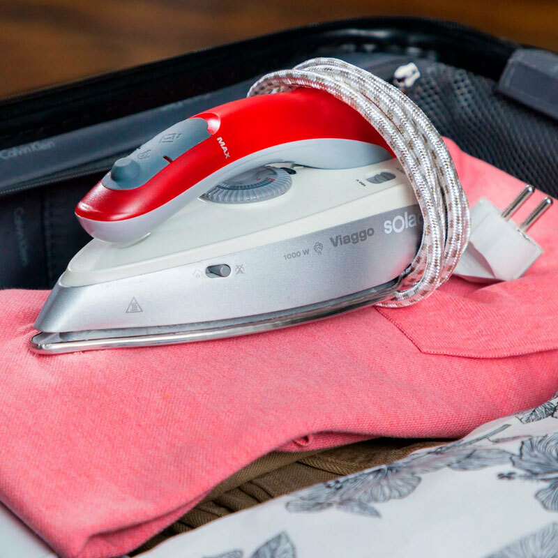 Plancha de viaje Solac PV1652 – Bivoltaje, Suela cerámica, Golpe de vapor 45 g/min
