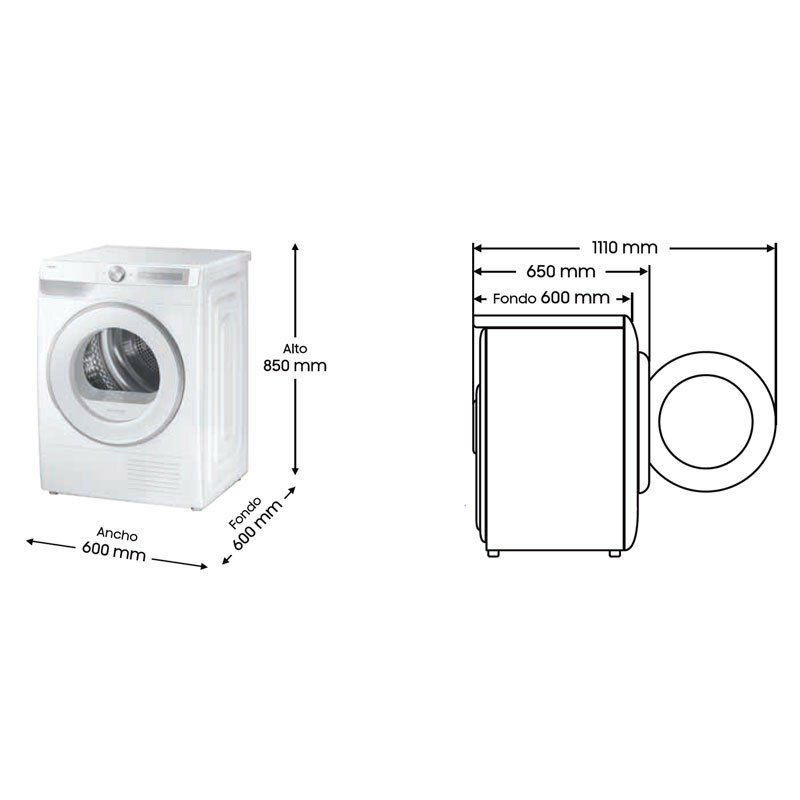Secadora Samsung DV90DG6845HHU3 – 9 kg, Bomba de calor, Clase A