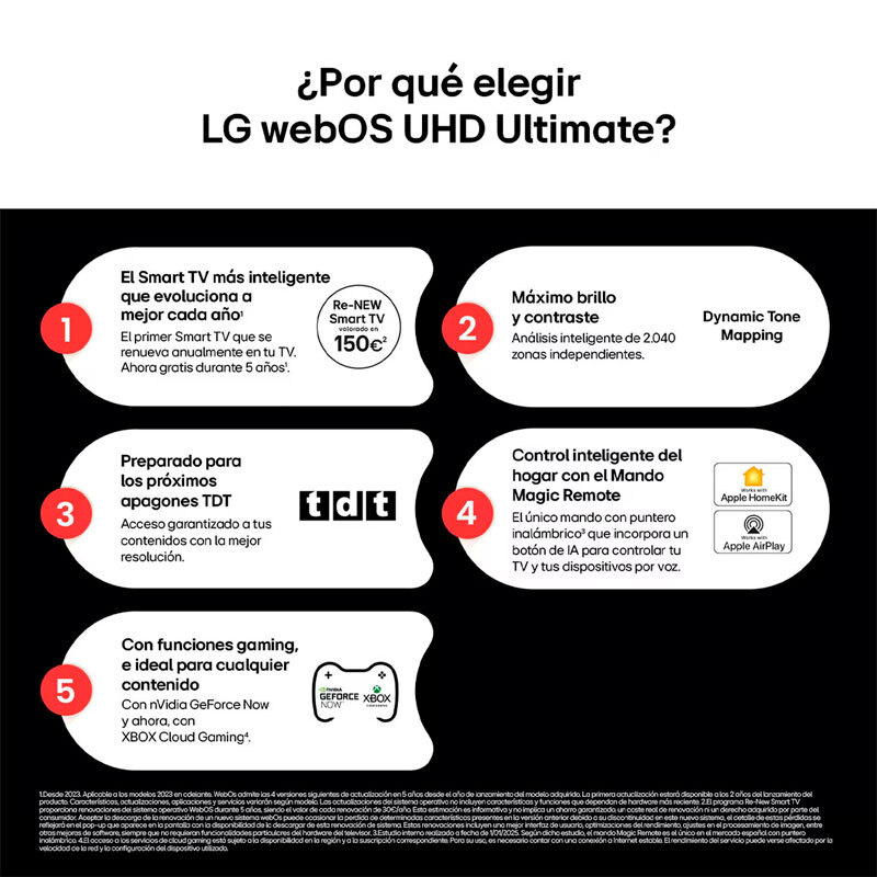 Televisor LED LG 50UA75006LA.AEU con pantalla 4K UHD de 50" (126 cm) y procesador α7 AI Gen8 que mejora detalle y color. Soporta HDR10 y HLG para mayor contraste, integra webOS, conectividad Wi‑Fi, Ethernet y Bluetooth 5.0, 3 HDMI y sonido de 20 W con AI Sound Pro, diseño fino y compatibilidad VESA 200x200.