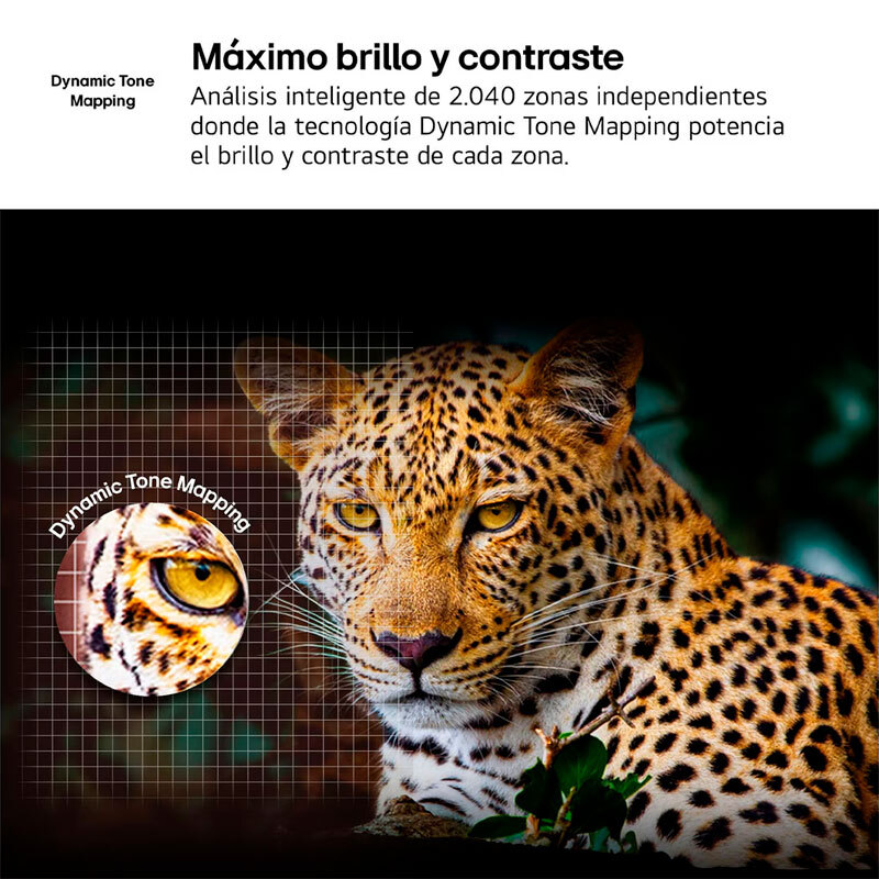 Televisor LED 65 pulgadas 4K UHD con procesador α7 AI Gen8 que optimiza imagen y sonido. Equipado con webOS 25, HDR10 y HLG, 3 HDMI 2.1 y Bluetooth 5.0 para conectividad avanzada. Diseño delgado en color negro, preparado para gaming con VRR/ALLM y buena potencia de audio para sala doméstica.