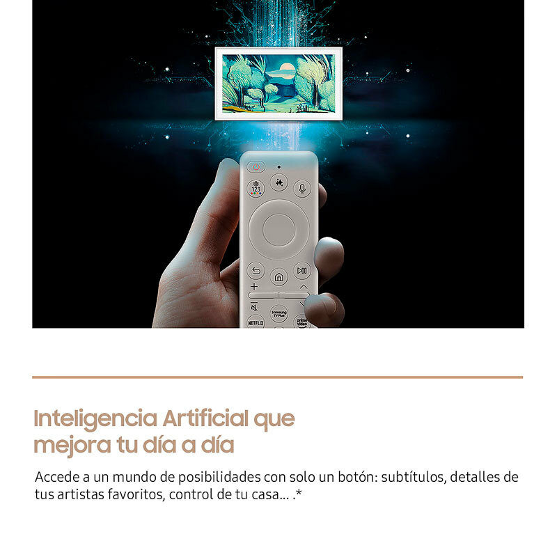 Televisor Samsung The Frame TQ50LS03FAUXXC de 50 pulgadas con panel QLED 4K y procesador NQ4 AI/Quantum 4K que proporciona imagen detallada y color preciso. Incluye Quantum HDR y HDR10+ Adaptive, modo Arte con sensor de brillo y marcos personalizables. Smart TV con Tizen y amplia conectividad.