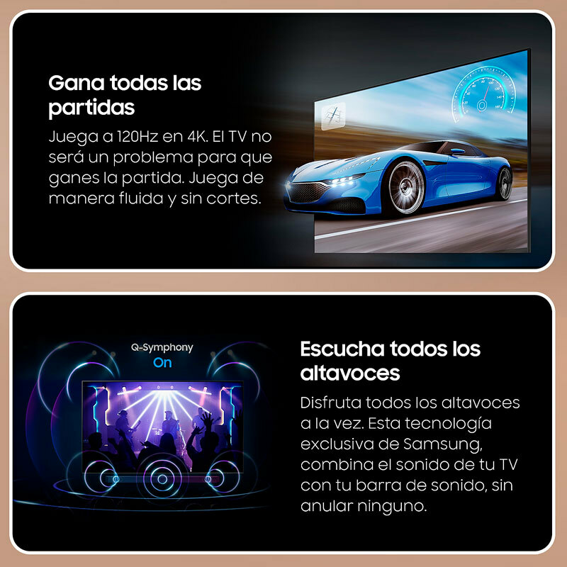 Televisor QLED Samsung TQ55Q70DATXXC de 55 pulgadas con resolución UHD 4K y procesador Quantum 4K que mejora imagen y sonido mediante IA. Ofrece Motion Xcelerator 100 Hz, Quantum HDR con HDR10+ Adaptive y Dual LED. Sonido OTS Lite y Q‑Symphony. Smart TV con Tizen, Wi‑Fi 5, Bluetooth 5.2, 4 HDMI, 2 USB, eARC y soporte VESA 200 x 200 mm para instalación versátil.