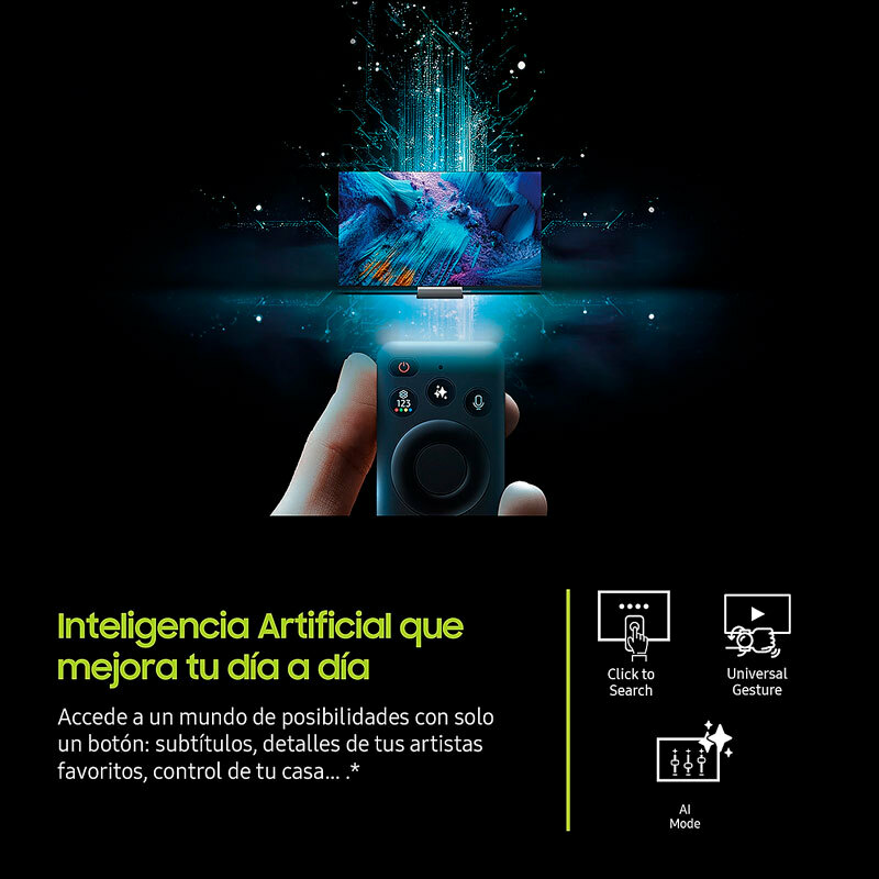 Televisor Samsung QLED de 75 pulgadas TQ75Q7FAAUXXC que ofrece imagen 4K Ultra HD con procesador Q4 AI para escalado inteligente y 100% volumen de color con Quantum Dot. Incorpora HDR10+, sistema Tizen Smart TV, Wi‑Fi y Bluetooth 5.3, múltiples entradas HDMI y sonido optimizado Q‑Symphony para una experiencia audiovisual inmersiva.