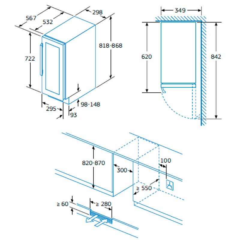 Vinoteca integrable Balay 3WUF073B – 21 botellas, 5-20 °C, puerta cristal UV