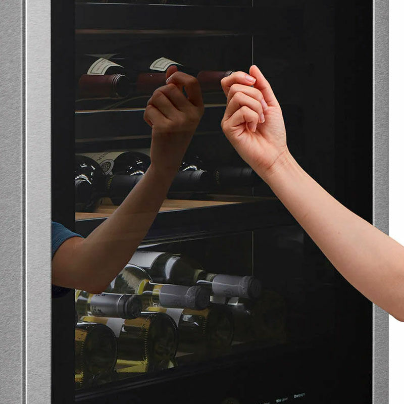 Vinoteca LG SIGNATURE LSR200W concebida para la conservación y envejecimiento profesional del vino, combina control multi-temperatura y óptimo control de humedad para preservar aromas. Incorpora puerta con filtro UV, baldas de madera, iluminación LUMIShelf y conectividad ThinQ para gestión remota y uso intuitivo.
